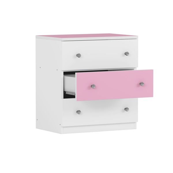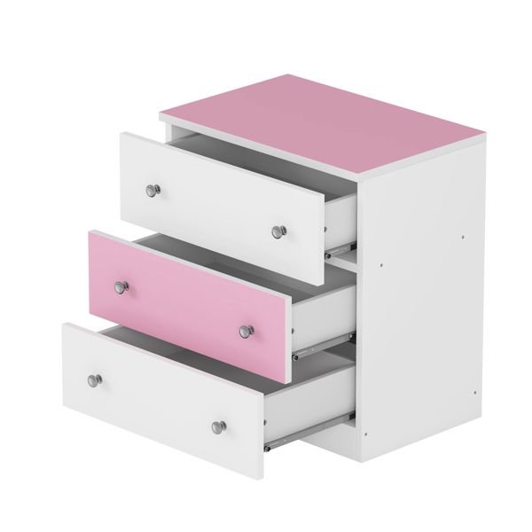 This Nightstand combines functionality with modern design, making it a stylish addition to any bedroom. The colorblock design offers a unique visual appeal, blending complementary tones for a contemporary look. It features three spacious drawers, providing ample storage space for books, gadgets, or personal items. The drawers are equipped with plastic handles, which are durable and easy to grip. Crafted from high-quality wood, this side table ensures long-lasting use, while its compact design allows it to fit seamlessly into smaller spaces. Its versatility makes it perfect as a bedside table or storage unit for any room.