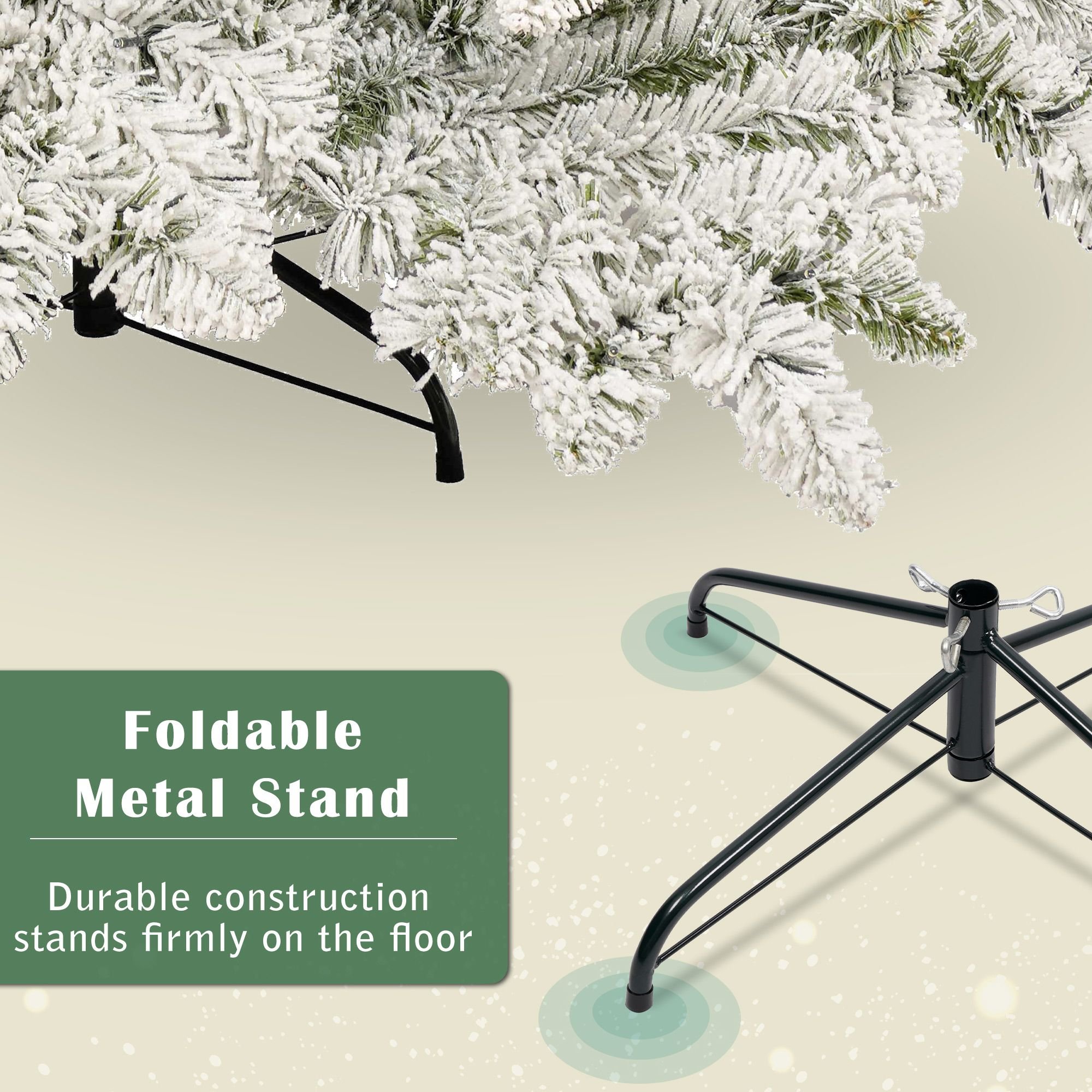 1.Create a winter Christmas scene with this Artificial Christmas Tree boasting soft looking foliage flocked with a snow-like effect throughout 1050 bendable branches for accenting with holiday accents.