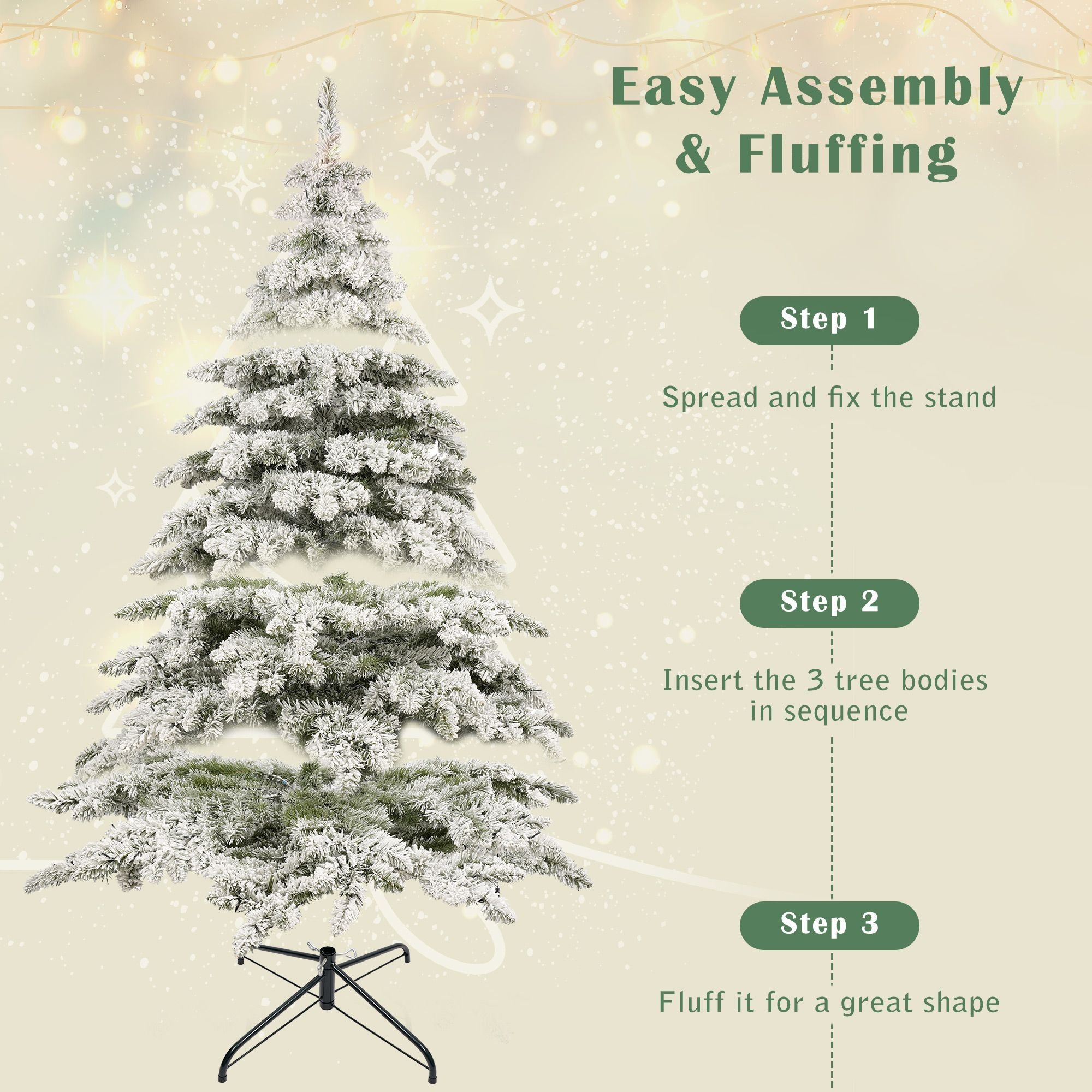 2.Full Christmas tree features super easy assembly in 3 steps.