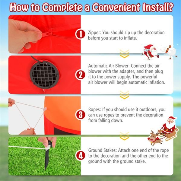 ● Automatic Inflation: This Christmas inflatable train features a powerful air blower. You just need to use the adapter to connect it to the power supply, then the built-in blower will immediately start automatic inflation. The whole process will be completed in minutes.