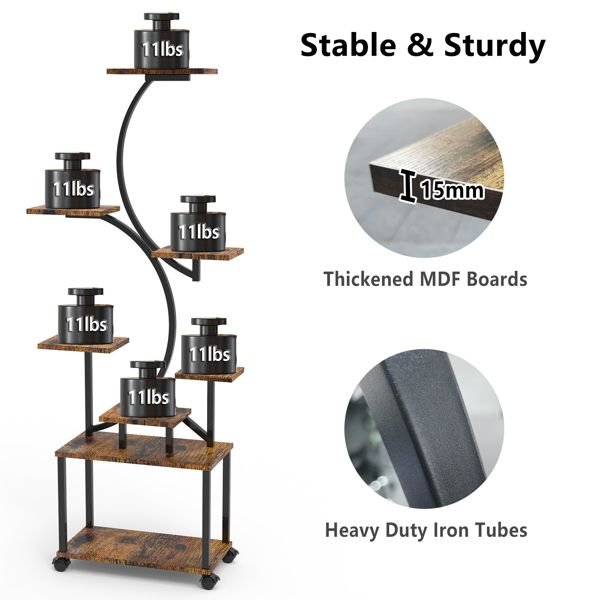8 Tiered Tall Plant Stand: This 61.42in indoor plant shelf features 8 tiers for at least 8 pot plants and 1 hook on the top tier for hanging potted plant, providing you with ample storage space to display plants as much as possible.