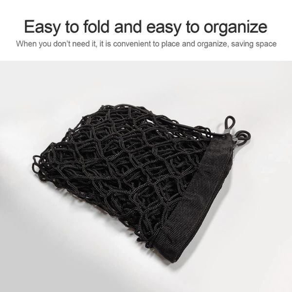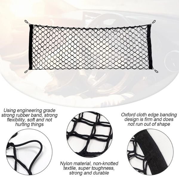 Elastic Trunk Storage Net: The elastic nature of the net allows it to expand and contract, accommodating different sizes and shapes of items. It helps keep your cargo secure and prevents it from shifting during transit.