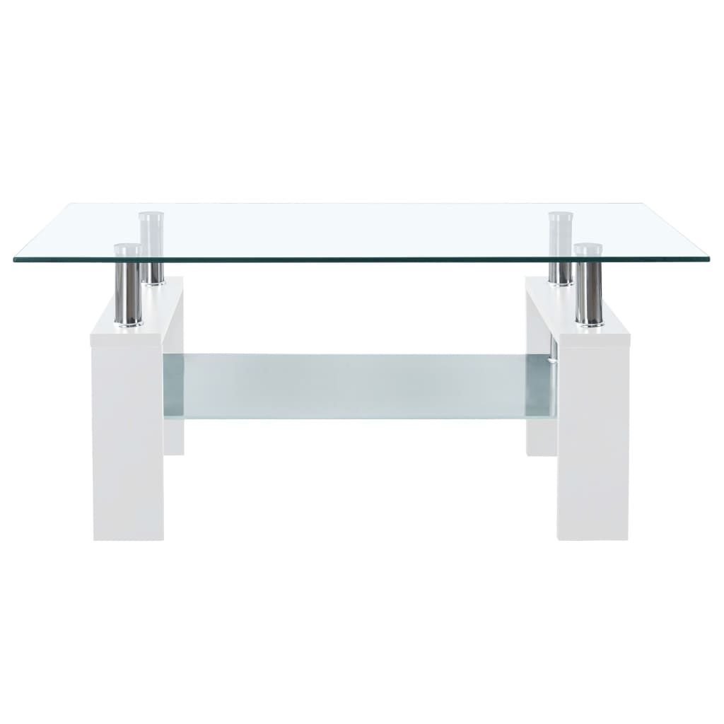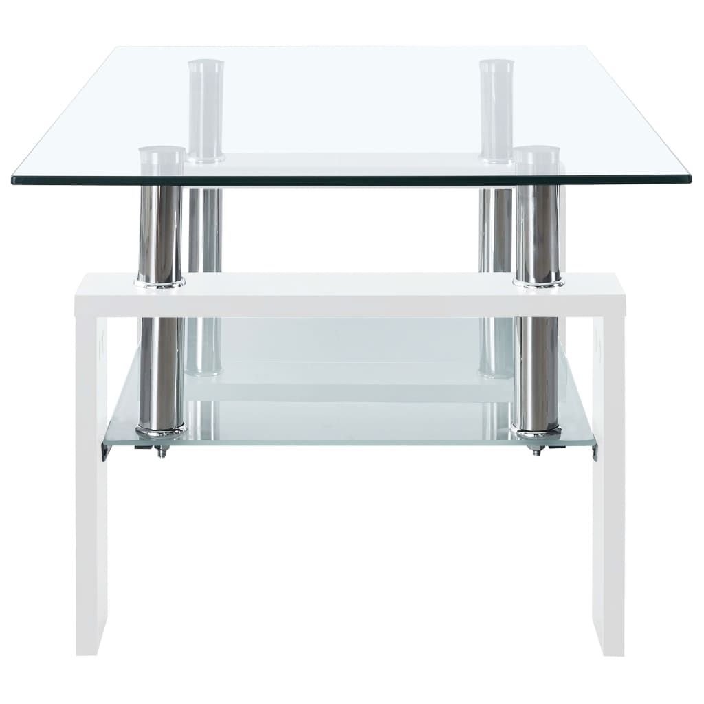 Coffee Table White and Transparent 37.4"x21.7"x15.7" Tempered Glass