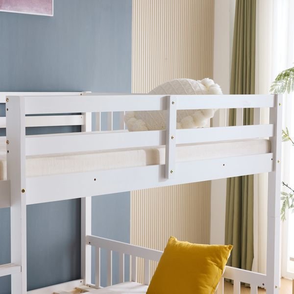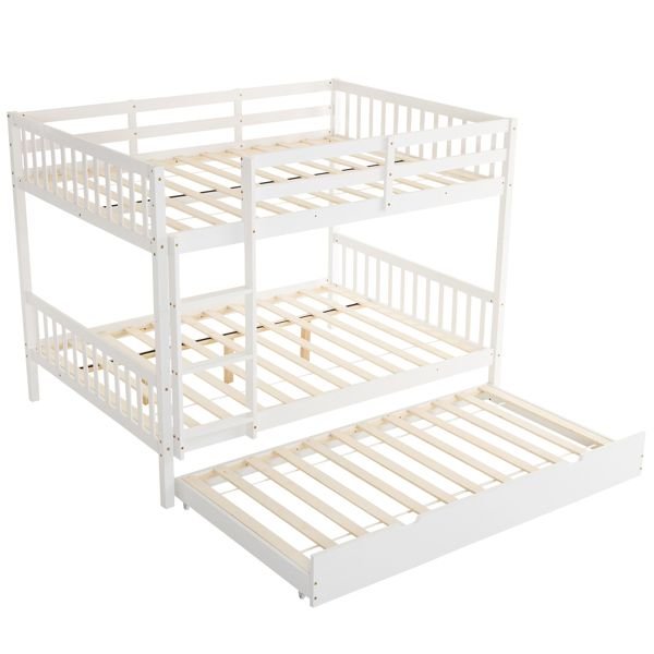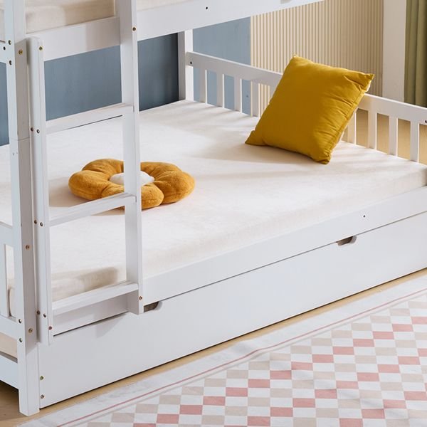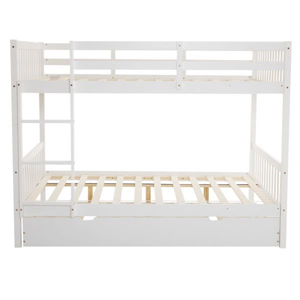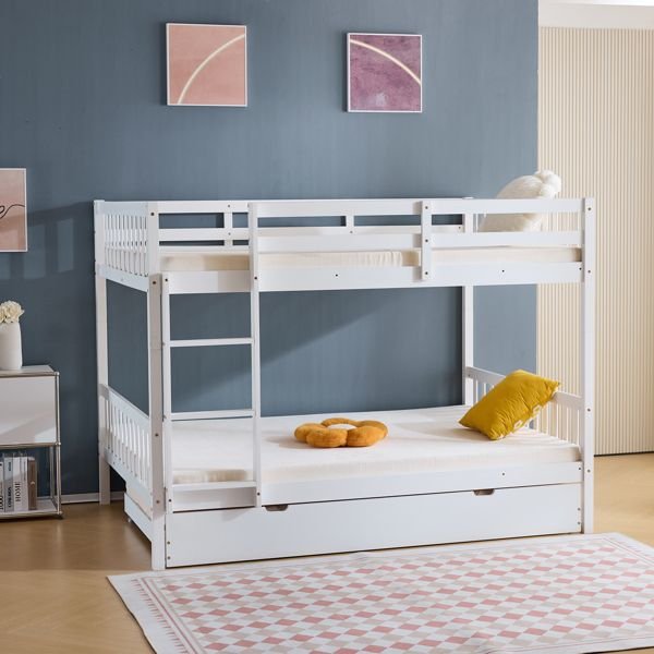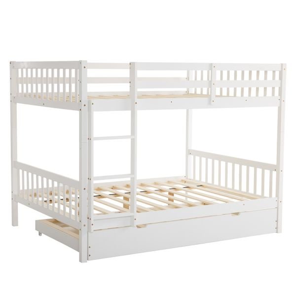 Full Size Bunk Bed with Trundle Bed, with Ladder and Safety Rails Pinewood Bunk Bed White