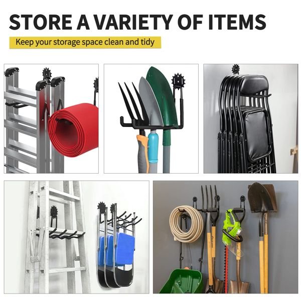 3. Save more space: Garage hooks create efficient storage for your garage, garden, store, basement or warehouse. Especially large and heavy items, garden hoses, shovels, brooms, kayaks, scooters, bulk items, power tools, bicycles, weed mowers, stools, ladders, etc. Hang the items you need to hang and hold to make room for you.