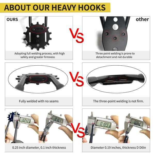 Reinforce 3 solder joints for garage wall hooks: By soldering the garden tool organizer to the base plate with 3 points, we offer the safest garage organizer on the market with our heavy duty garage hooks that can withstand weights up to 42 kg /92 LBS