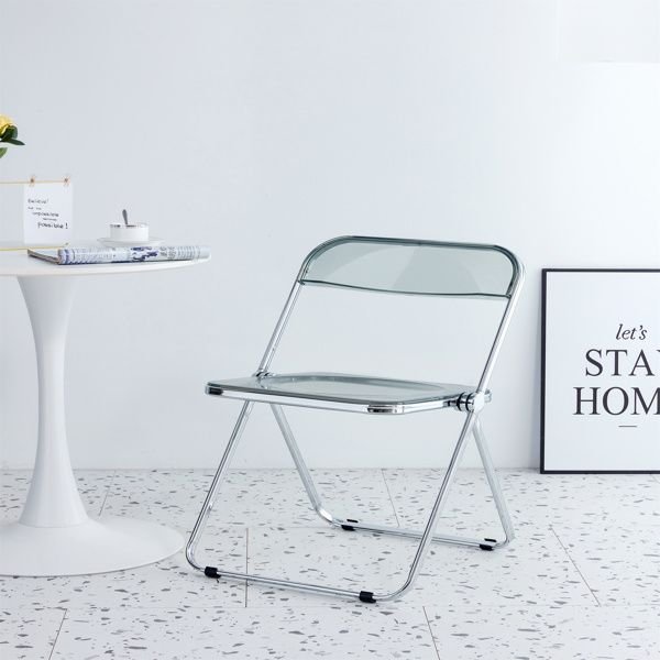 Gray Clear Transparent Folding Chair Chair Pc Plastic Living Room Seat