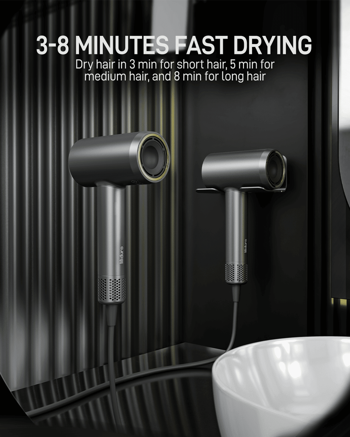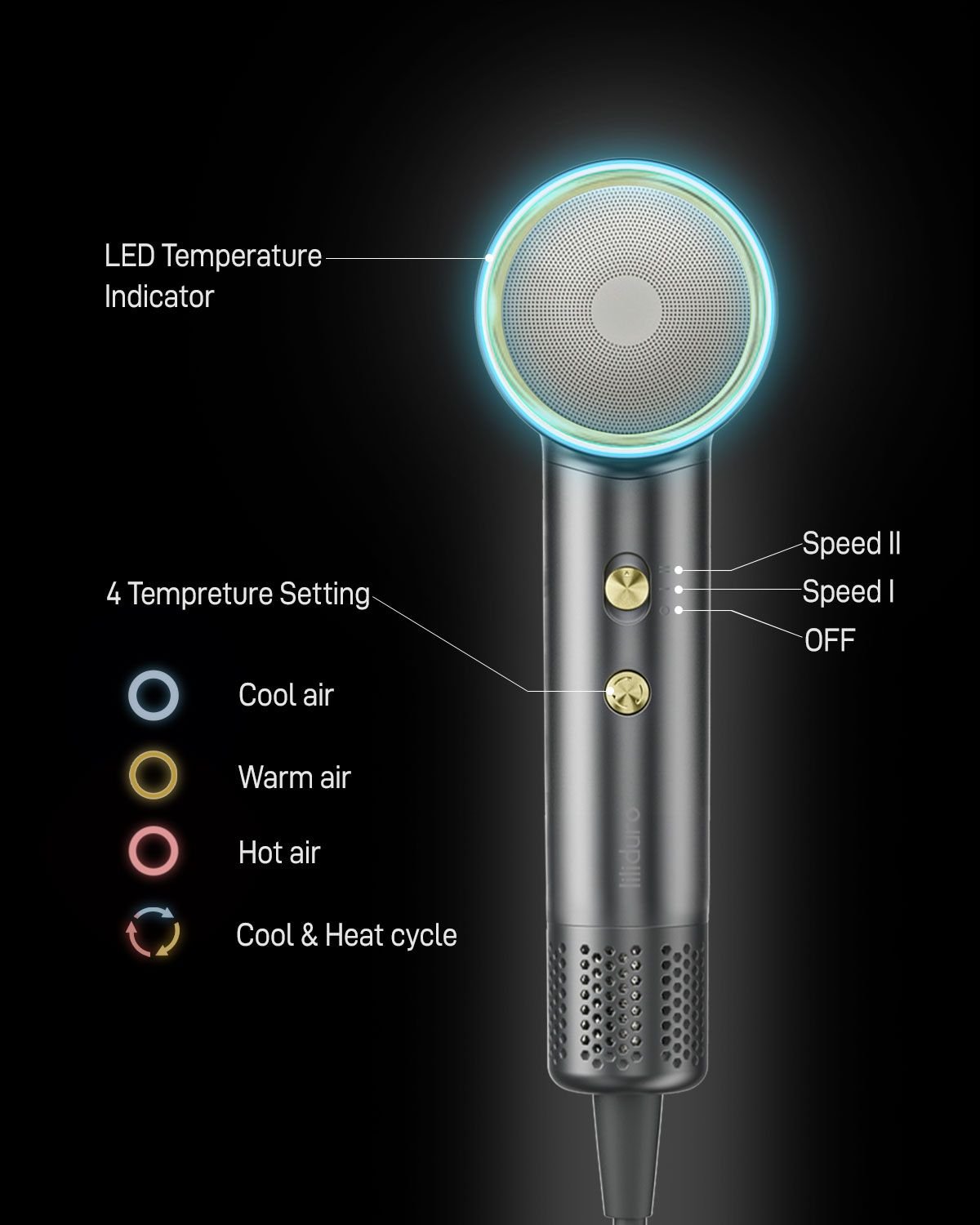 INTELLIGENT TEMPERATURE CONTROL - LILIDURO blow dryer temperature control chip with monitoring technology at a rate of 100 times per second, ensure stable and even airflow temperature that won't damage the hair; 3 heat settings + heat cycle setting, meet your various needs;