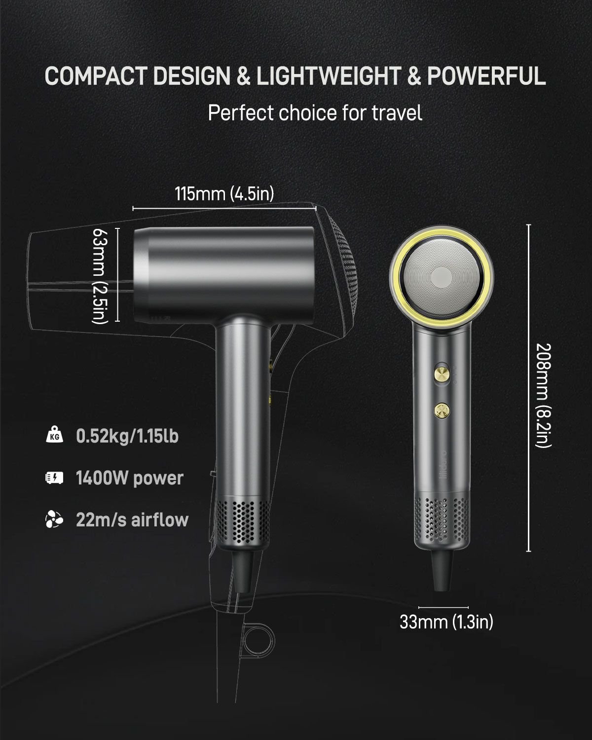 COMPACT & LIGHTWEIGHT & MAGNETIC ATTACHMENTS -The High-Speed hair dryer is half the weight and size of traditional blow dryer; This reduce strain on your arm while allowing for more precise styling movements; Perfect choice as a travel hair dryer; Coming with 3 magnetic attachments, Diffuser & Concentrator nozzle & Styling nozzle for various styling;