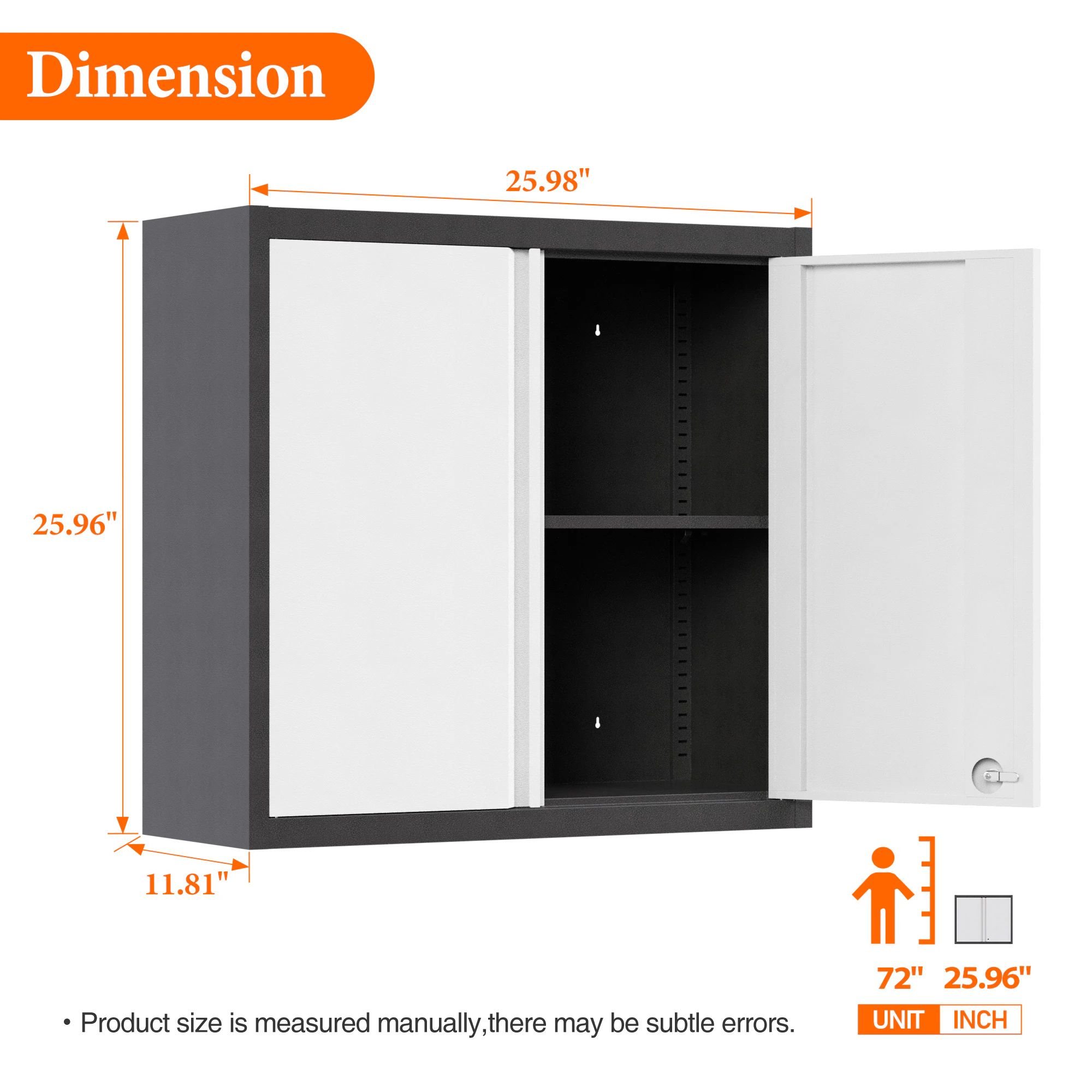 Home > Metal Wall Cabinets For Storage With Lock,Steel Garage Hanging Cabinet With 1 Adjustable Shelf And 2 Doors,Garage Cabinet Upper