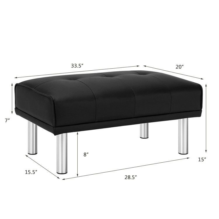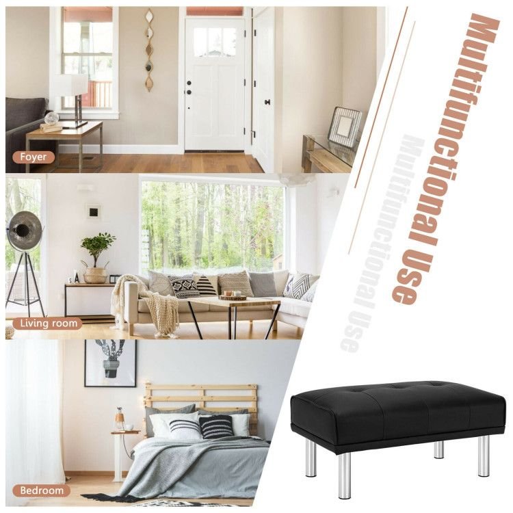 It can correspond with your sofa to form a comfortable recliner. Or you can place it at the end of your bed. Stainless steel and solid wood materials showcase durability while the overstuffed PU cushion reveals comfort. The bench is stable and cozy once assembled with simple steps. It is lightweight, yet can hold a maximum load capacity of 265 lbs. Benefitted from its classic appearance, this bench is a versatile match for most of the home.