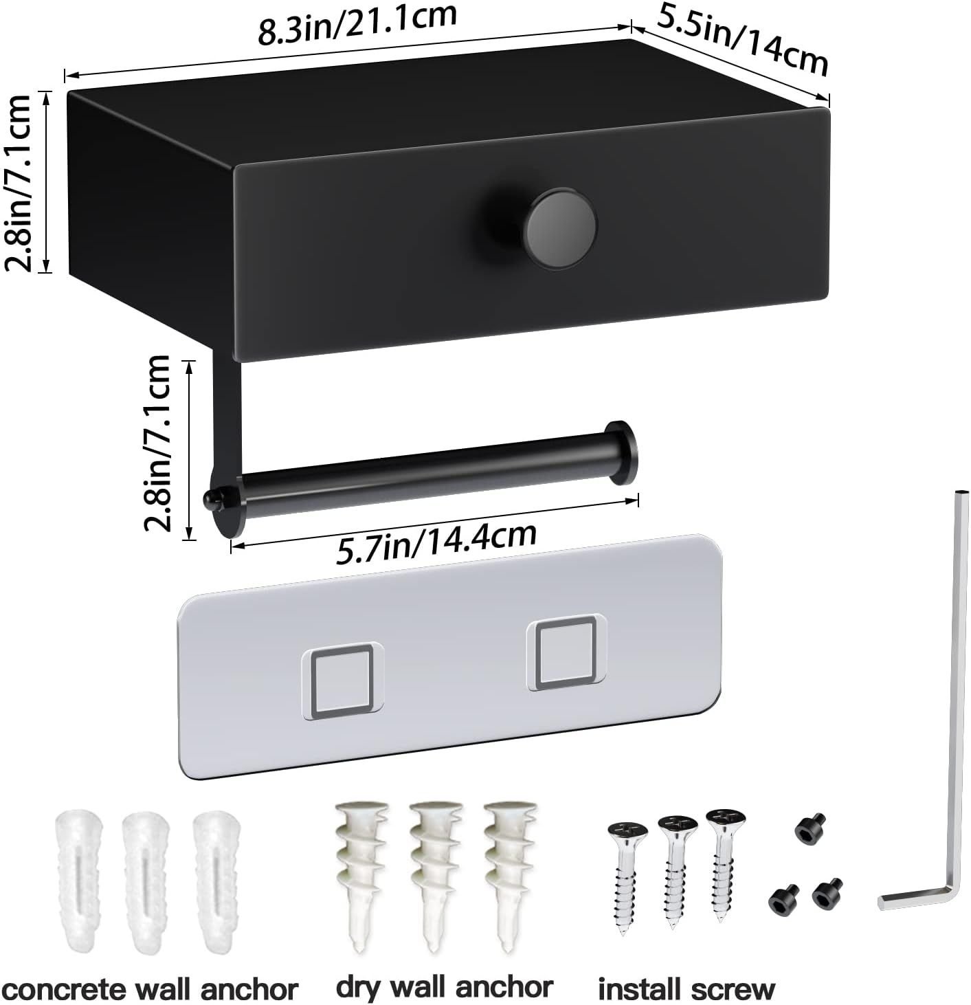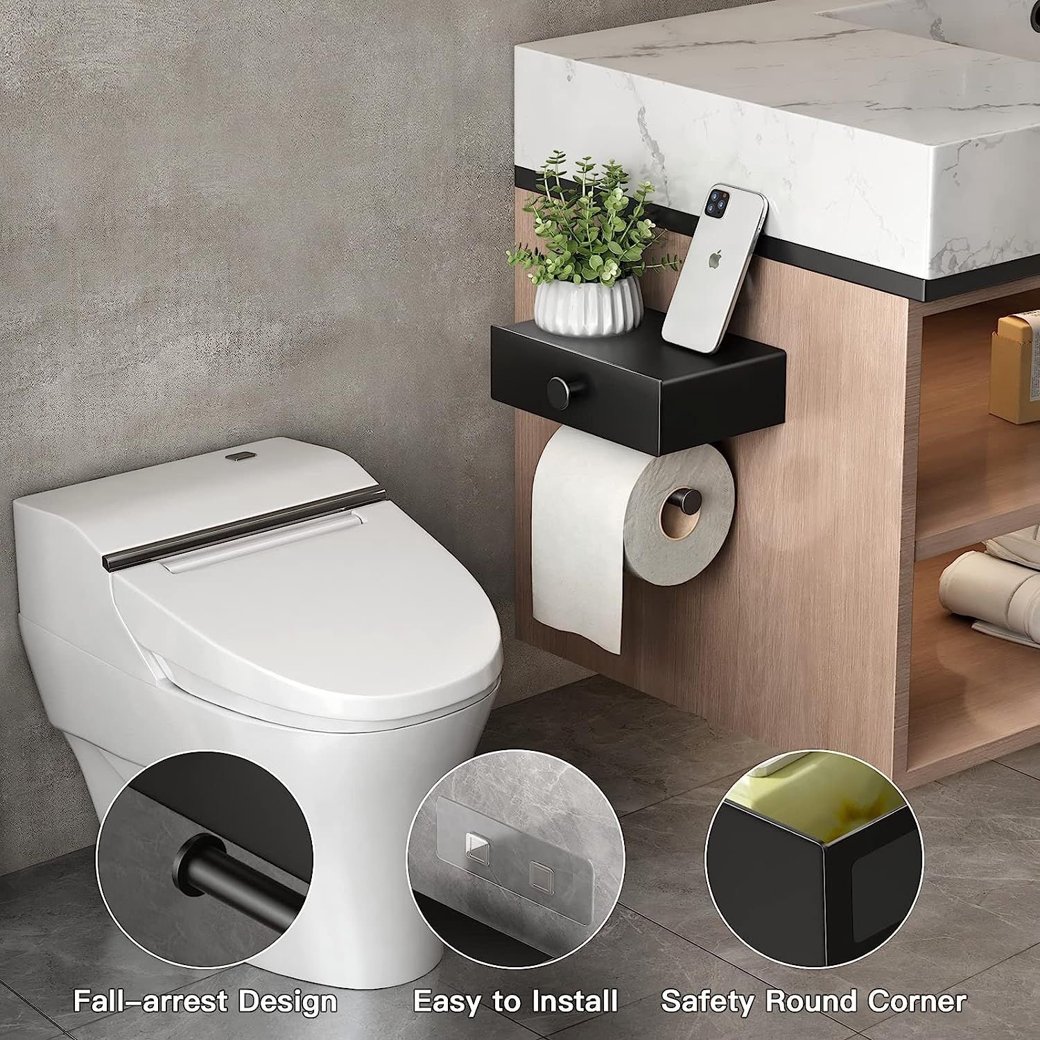Home > Toilet Paper Holder with Shelf Black Wipes Dispenser for Bathroom Stainless Steel Toilet Paper Holder with Storage Drawer Adhesive Wall Mount Small Ba