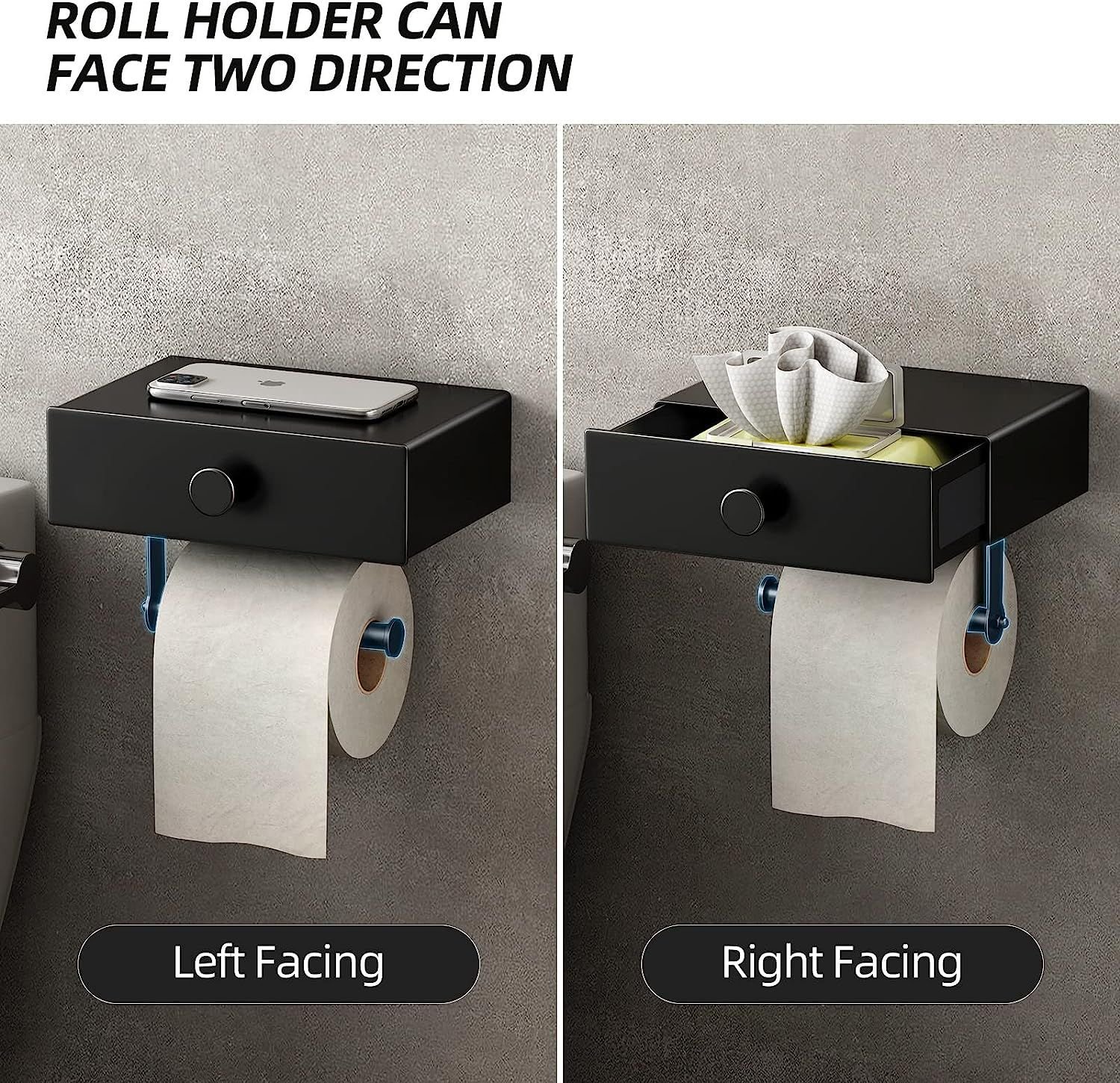 Toilet Paper Holder with Shelf Black Wipes Dispenser for Bathroom Stainless Steel Toilet Paper Holder with Storage Drawer Adhesive Wall Mount Small Ba