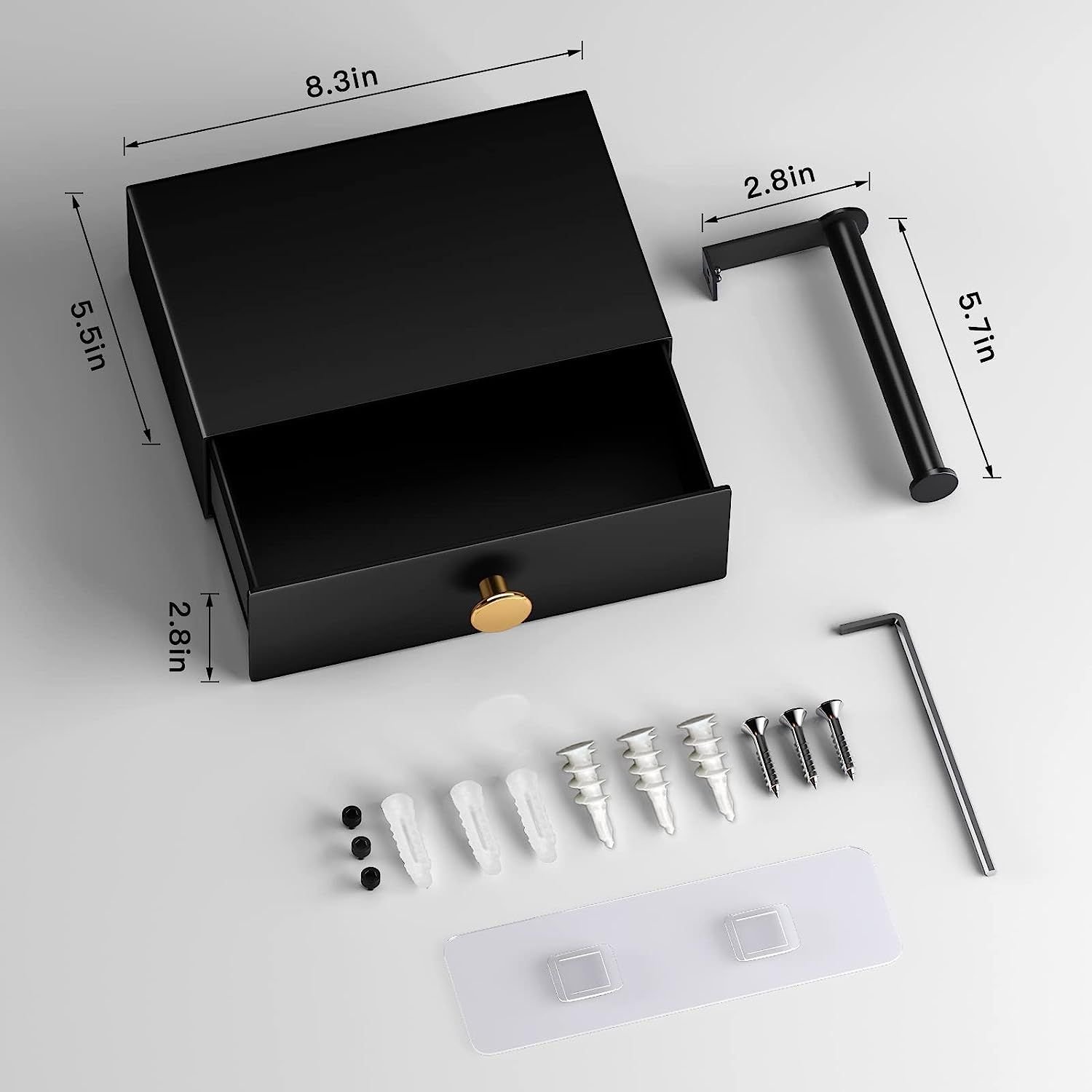 [EXPANDED STORAGE SPACE]Sizes 8.3 x 5.5 x 2.8 inches, up to now our toilet paper holder is the largest one of its kind on the market. It’s not only suit for standard flushable wipes, but also for big baby wipe packages.