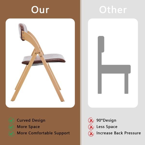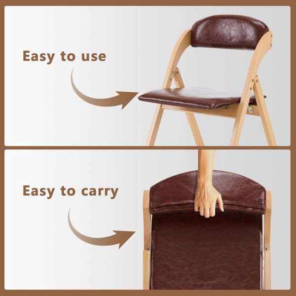 This set of 2 wooden folding chairs combines practicality and comfort, making it a versatile seating solution for any occasion. Whether you're hosting guests, enjoying a meal, or having a party, these chairs provide a cozy and convenient option. The chairs feature soft padded seats upholstered in PU leather and are built with a sturdy beechwood frame that can support up to 400 lbs. With their foldable design, these chairs are easy to store and carry, making them ideal for both indoor and outdoor use.