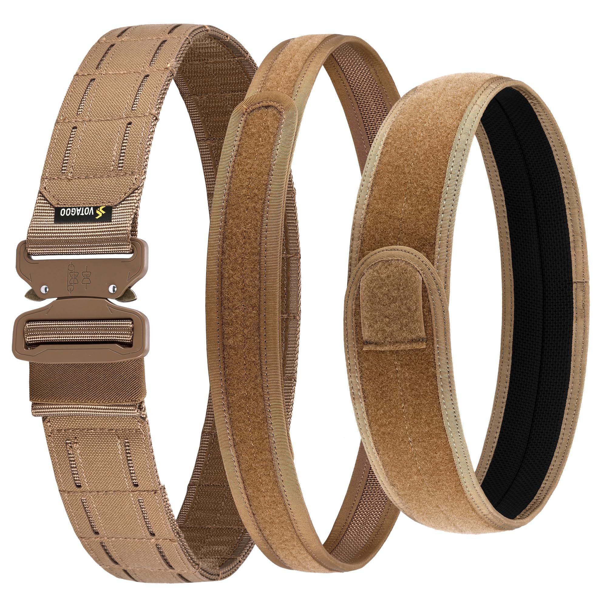 [Buy One Get Three]Battle belt 2'' inner belt built by 2-ply nylon webbing, with Laser-cut MOLLE system for attaching tactical gears; Inner loop belt fits in the vast majority of military/civilian style pant belt hooks; Anti-slip loop belt helps the belt stay in place during rigorous use.[Adjustable & Size]Tactical belt outer webbing belt is easy to adjustable length to fit your need , to fit 32"-45" waist size. Shooting belt there have three sizes (M&L&XL) for you to choose from. Main belt width: 1.75"; Inner loop belt width: 1.5"; Anti-slip loop belt width: 2".[Quick Release Buckle & Compatible With Molle]Tactical belt for gun holster with quick release metal buckle, allowing you to swiftly don or remove the belt. Exterior MOLLE system convenient for you to attach more tactical gears (mag pouch, MED kits, pouches, etc ); inner loop belt to ensure support & fit the MOLLE battle belt, it also can be used separately.[Comfortable & Durability]Tactical duty belt constructed from 1000D Nylon, this belt is resistant to abrasions, Abrasion, tear and cut resistance ensures our belts are up to whatever challenges you.The rubberized texture Anti-slip loop belt adds acomfortable padded interior, allows you to comfortably wear over your clothing on the waist.[After-Sales Service]We tactical belts safelife defense duty belt have provide lifetime warranty after-sales service. If the product appears how the problem, please feel free to contact us, we will provide the best solution for you at the first time.