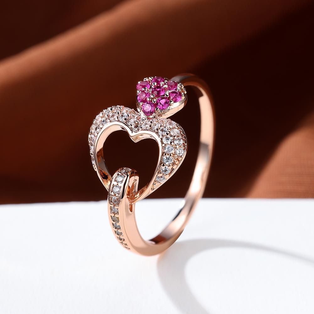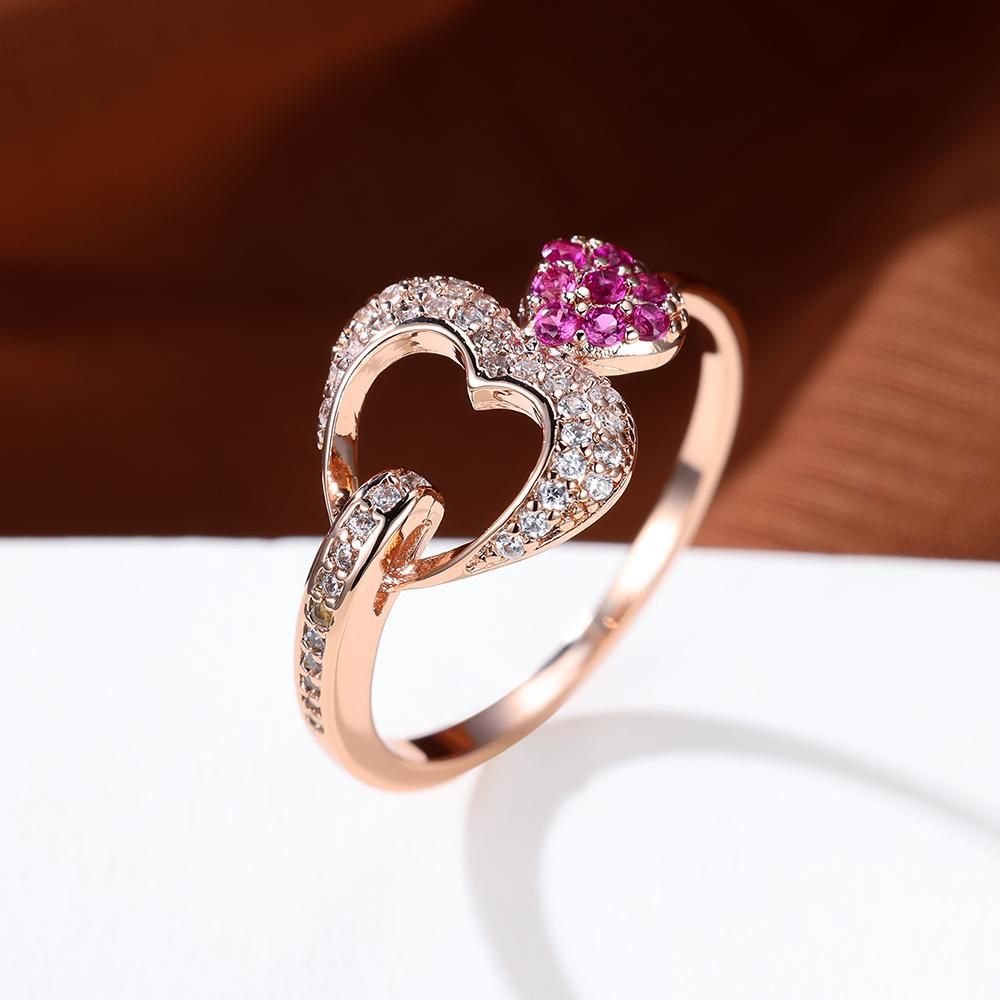 Home > Delicate Double Heart Shape Ring Inlaid Pink Zircon 18K Gold Plated Hand Decoration For Women Valentine's Day Jewelry