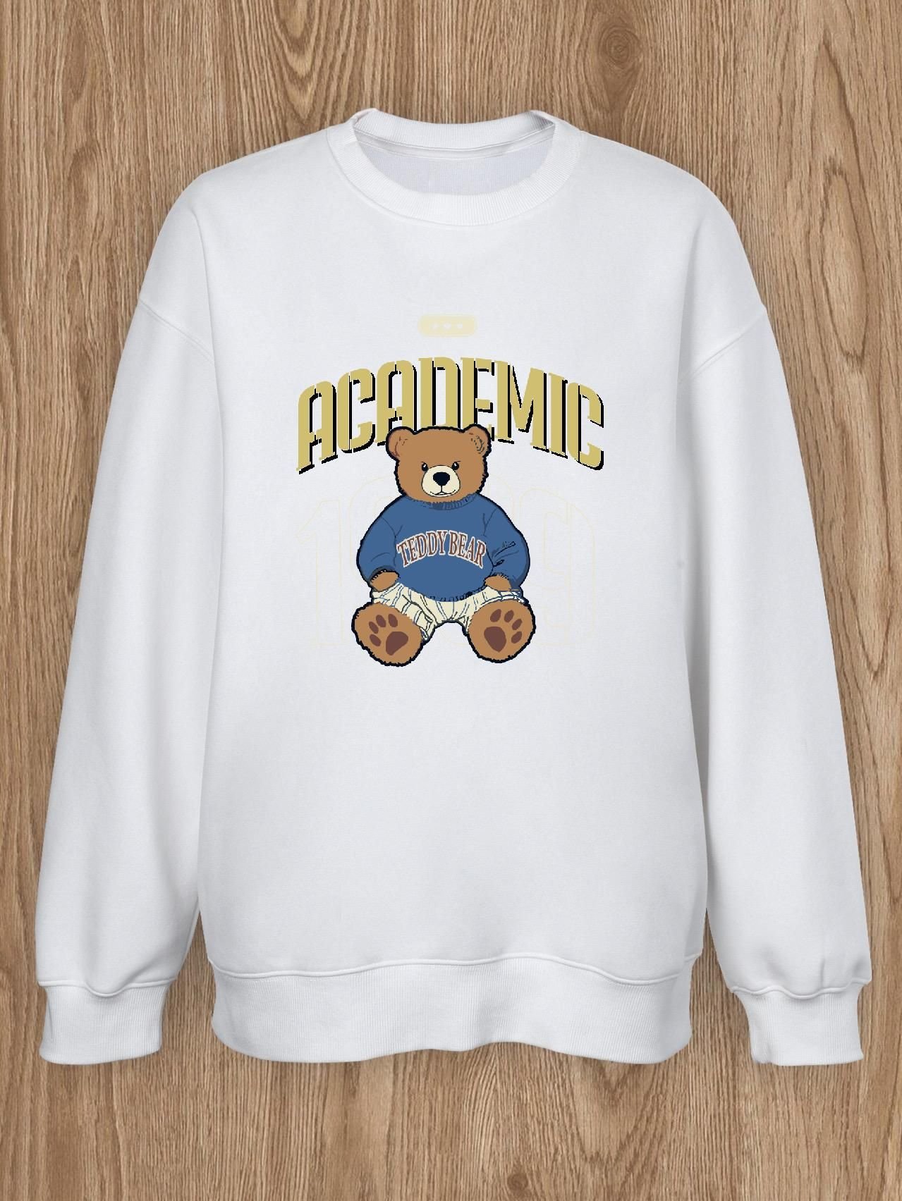 Women Basic Casual Pullover Spring Autumn Long Sleeve Teddy Bear Printed Round Neck