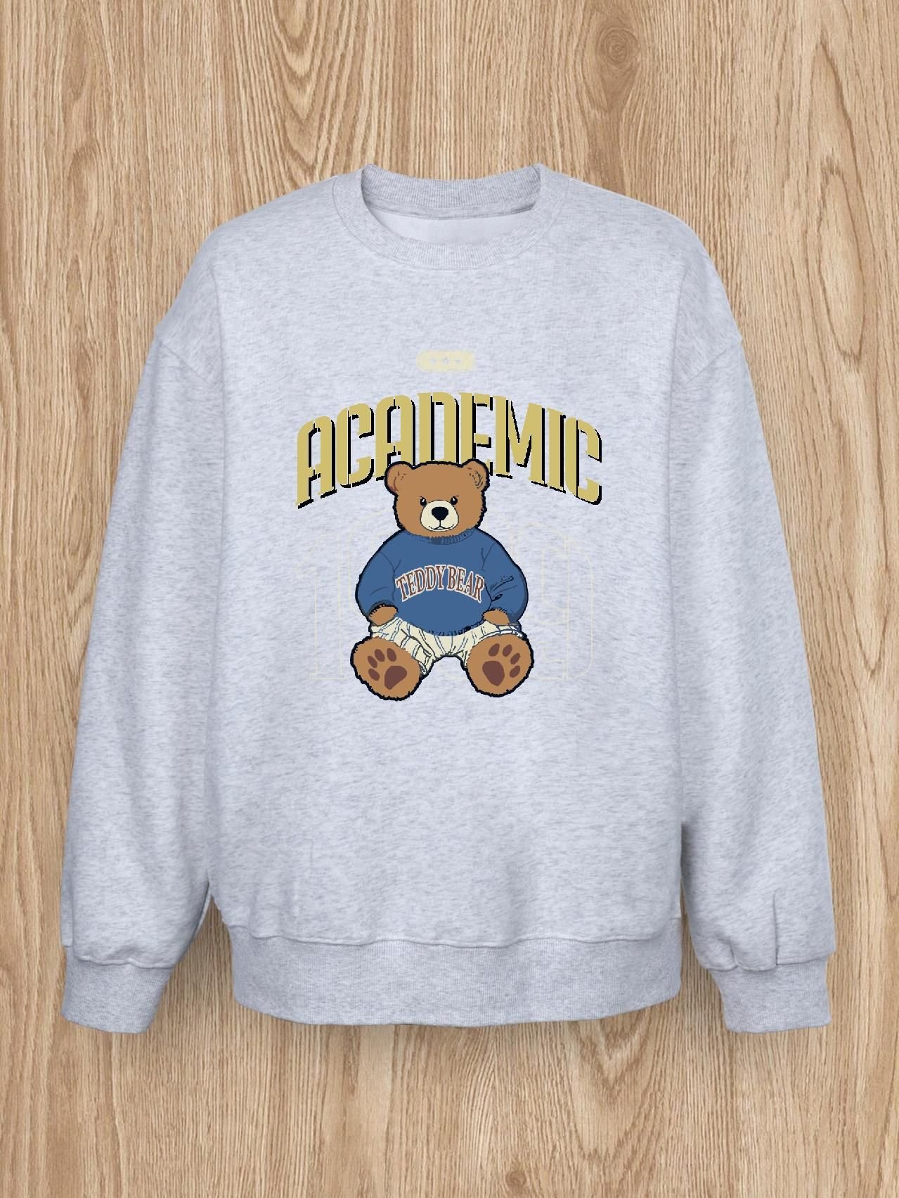 Women Basic Casual Pullover Spring Autumn Long Sleeve Teddy Bear Printed Round Neck