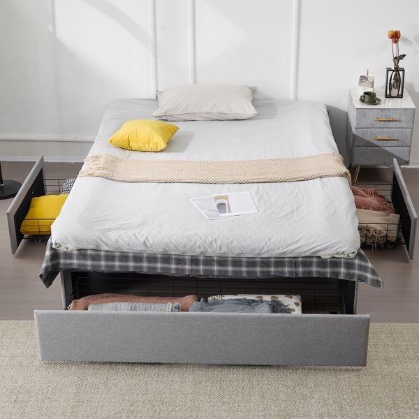 4. Stylish Upholstered Design: Wrapped in soft linen fabric, this bed frame offers a sleek, modern look. The padded frame adds both comfort and a touch of luxury, making it the perfect statement piece for any bedroom.