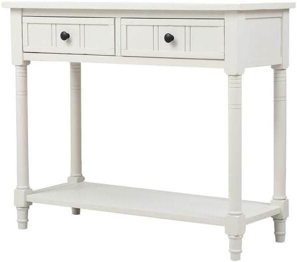Series Console Table Traditional Design with Two Drawers and Bottom Shelf (Ivory White)